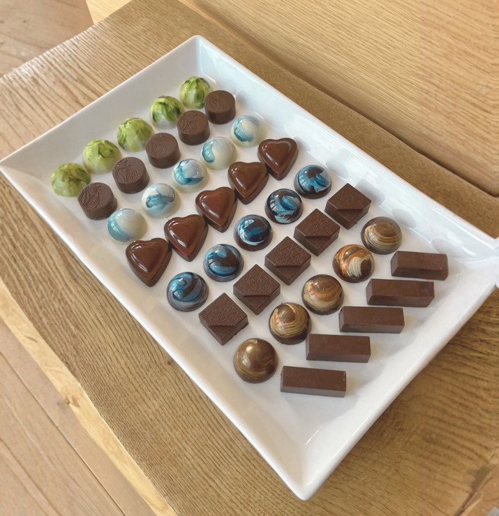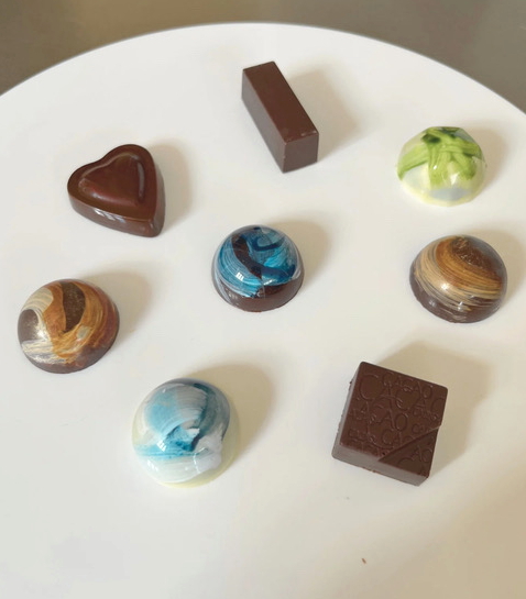 いろいろなフレーバーのガナッシュで試作していたときは、全部チョコレートだと違いがわかりづらいな・・・とちょっとマイナスに感じていましたが、チョコレートを「ダーク、ミルク、ホワイトの3種類」使って味を組み立てたところ、それぞれの違いが生まれ、バランスがよく仕上がりました。