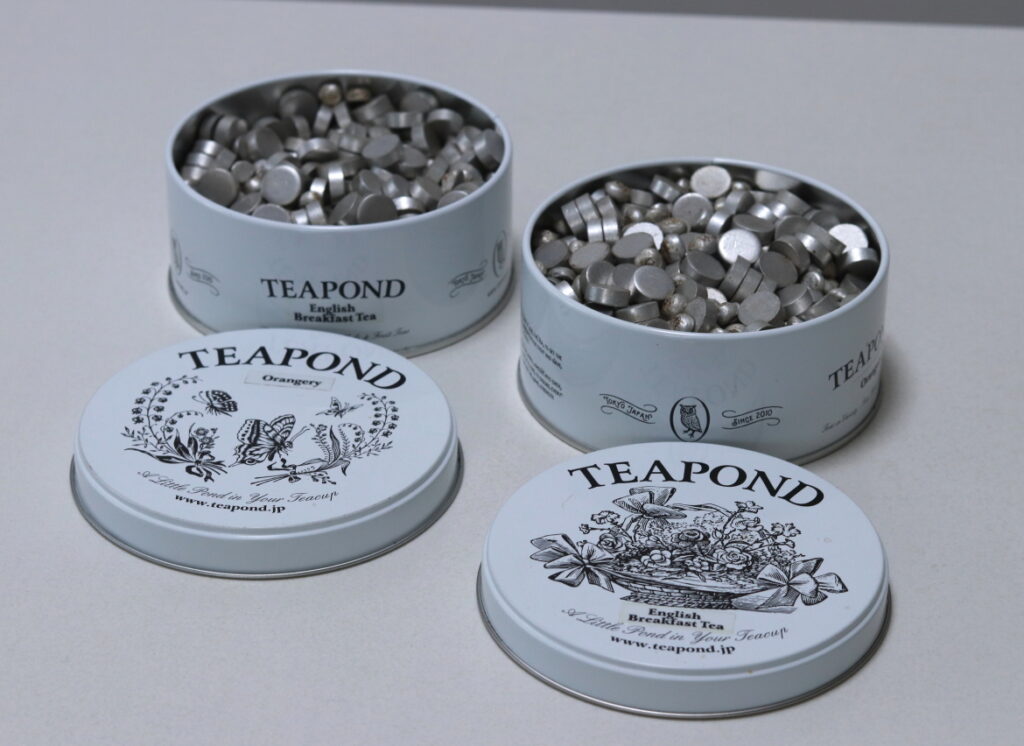 リフォームに伴う片付けを機に、TEA PONDの可愛い缶に入れ替えたのでした。 探していたとき、この缶は目に入っていたのに、まさかこれに重石が入っているとはまったく思わなくて。