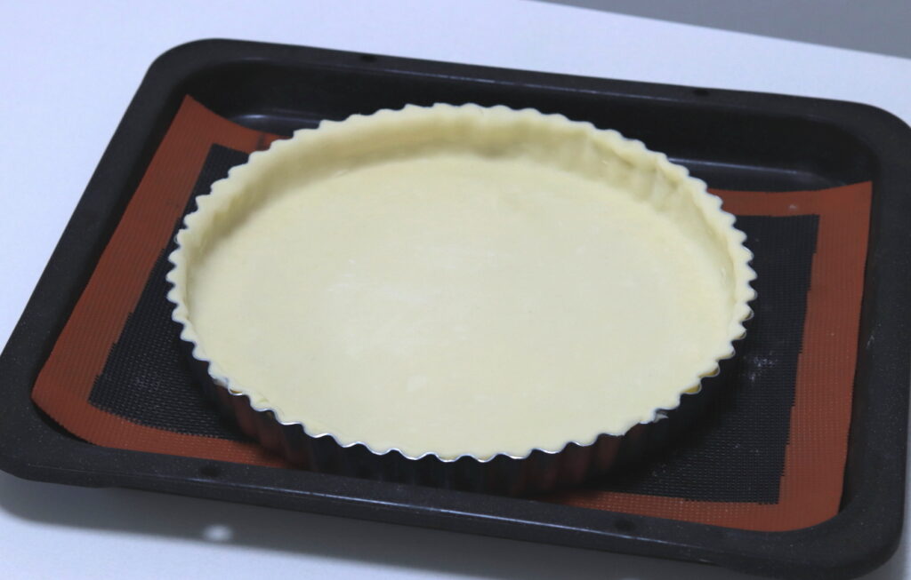 タルト型にパイ生地を敷き込みました。 涼しくなったので、生地がだれることもなくて楽勝。
