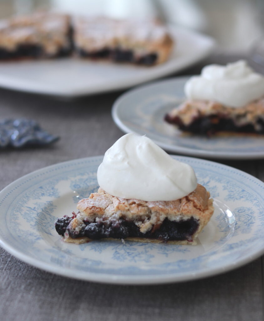 パイ生地とトップのマカロン生地のサクサク感がとても良くて、風味もとても良いのです。 他では食べたことがない「フランス風のブルーベリーパイ」なのです。