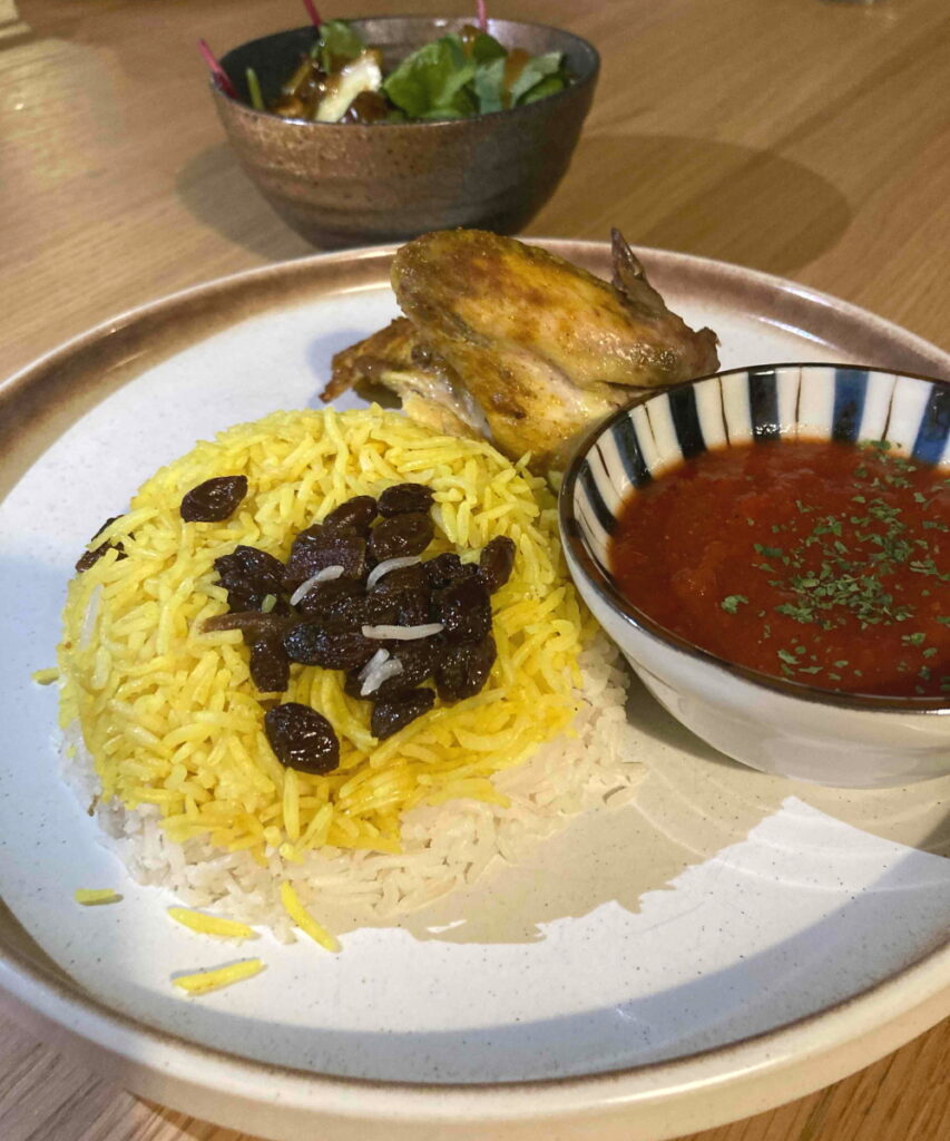 マンディ風味のラム肉に、スモーキーなデーツのアイオリ、ドゥグスソース(ドゥグスソースも美味しいと事前に聞いていました)、玉ねぎ、ルックコラを添え、柔らかなミーファ・フォカッチャで包んだ一品。
