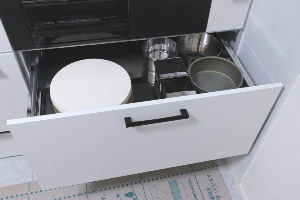 ↑ これはコンロ下の結構大きな引出収納。