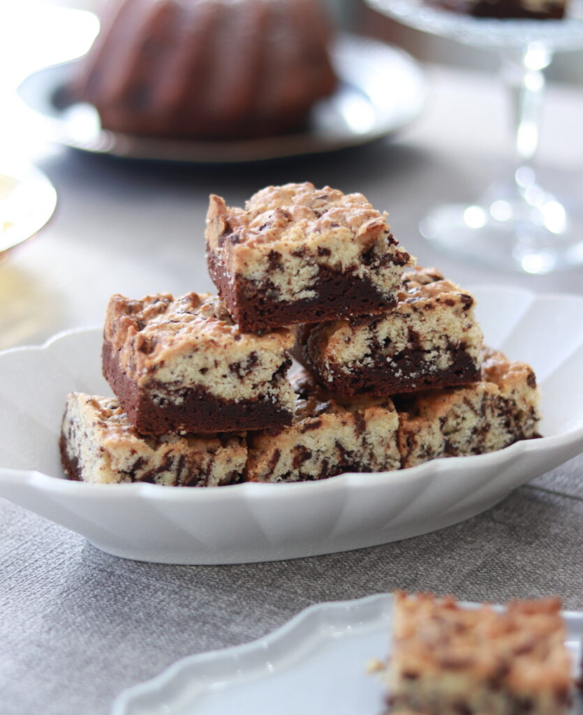 凝っているように見えて、でも実際はとても簡単。 写真のようにブラウニーの上にクッキー種を乗せるだけ。