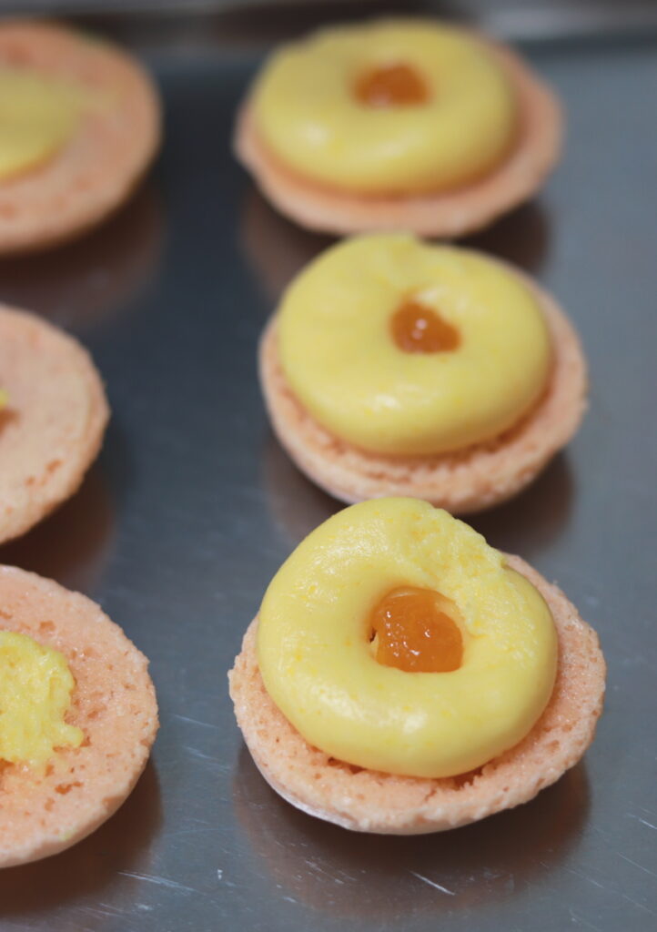 マカロンコックにつきましては、マカロナージュの加減や焼成の加減が大きく影響するので、そこを攻略するまで大変かもしれませんが、一旦攻略してしまえば、軽量は少ない、作業工程も少ない、とても楽ちんなお菓子です。
