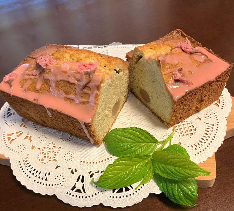 わぁ、美しいです! 「通信レッスン」で「桜のパウンドケーキ」をお作りくださいました。
